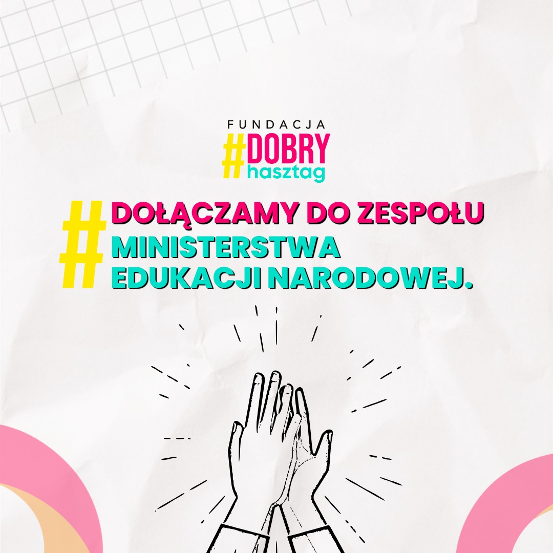 Dołączyła do zespołu współpracującego z 𝗠𝗶𝗻𝗶𝘀𝘁𝗲𝗿𝘀𝘁𝘄𝗲𝗺 𝗘𝗱𝘂𝗸𝗮𝗰𝗷𝗶 𝗡𝗮𝗿𝗼𝗱𝗼𝘄𝗲𝗷. 📣 Z ogromną dumą informujemy, że Fundacja #DOBRYhasztag dołączyła do zespołu współpracującego z 𝗠𝗶𝗻𝗶𝘀𝘁𝗲𝗿𝘀𝘁𝘄𝗲𝗺 𝗘𝗱𝘂𝗸𝗮𝗰𝗷𝗶 𝗡𝗮𝗿𝗼𝗱𝗼𝘄𝗲𝗷. To dla nas nie tylko wielkie wyróżnienie, ale przede wszystkim szansa na jeszcze większy wpływ na przyszłość młodych ludzi…. Czytaj wpis 1 minuta czytania